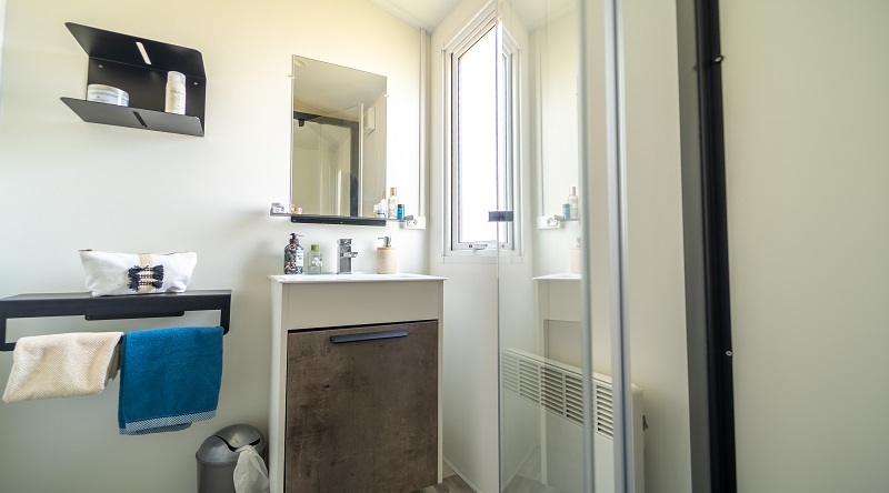 2 salles de bain attenantes aux chambres avec chacune douche, lavabo et WC.